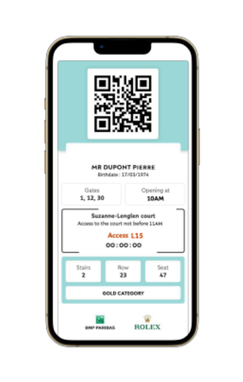 Le QR code et votre numéro de place s’affichent dans l’app. Présentez-les aux contrôles pour accéder au stade et au court indiqué. Bonne session !